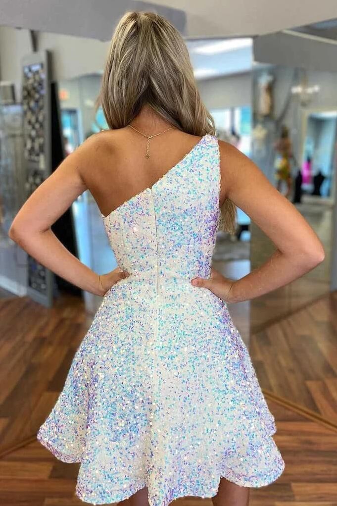 This A-line short homecoming dress features shimmering royal blue sequins that catch the light beautifully, creating a striking and elegant look. Its flattering silhouette enhances your figure while offering comfort and ease of movement, perfect for dancing the night away. Ideal for making a memorable entrance, this dress combines classic style with a modern sparkle to elevate your special occasion wardrobe.