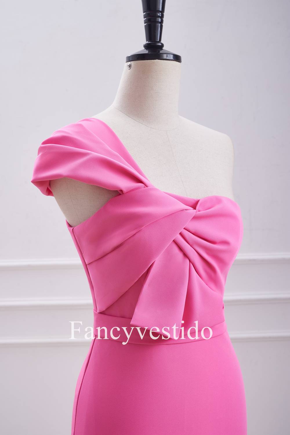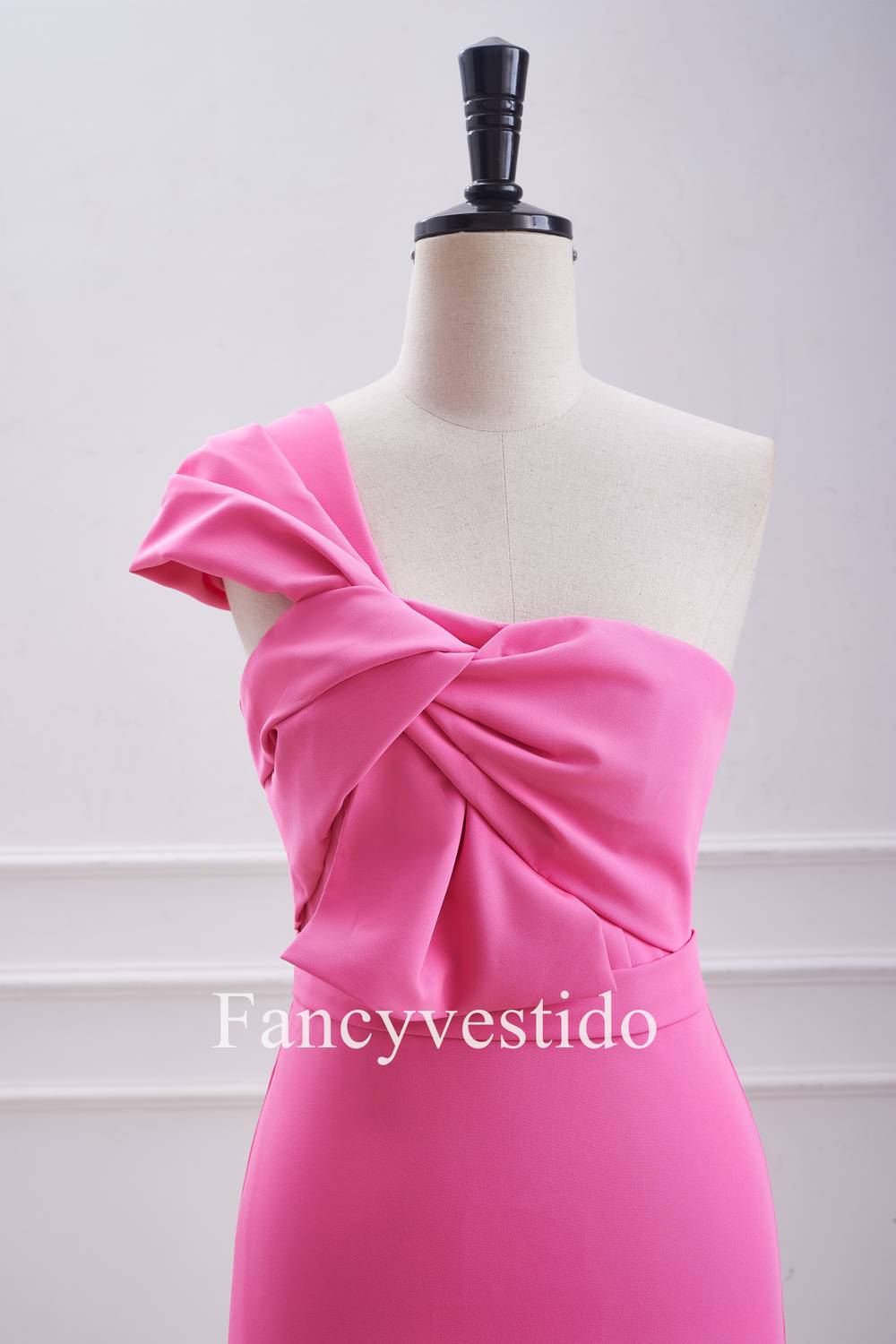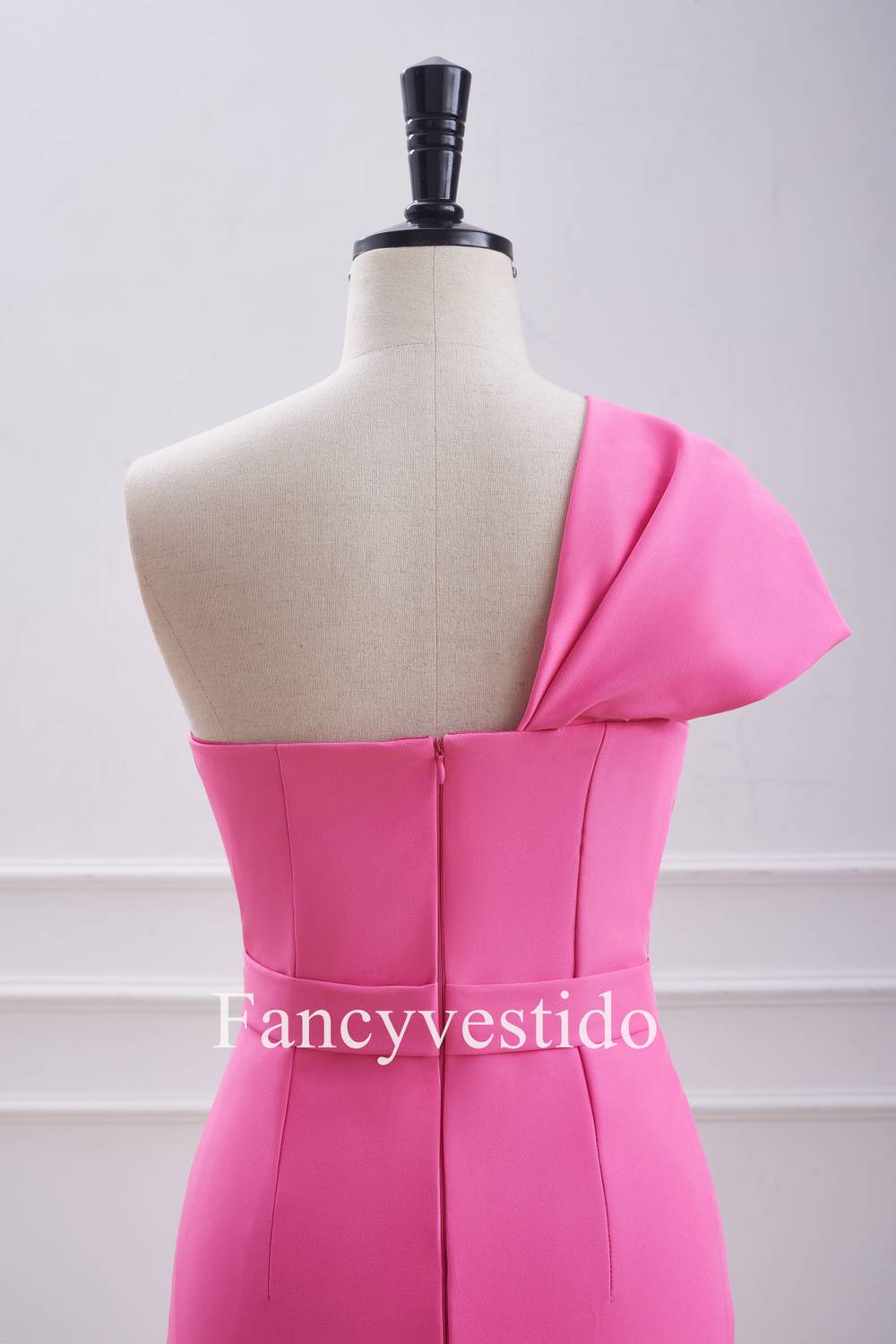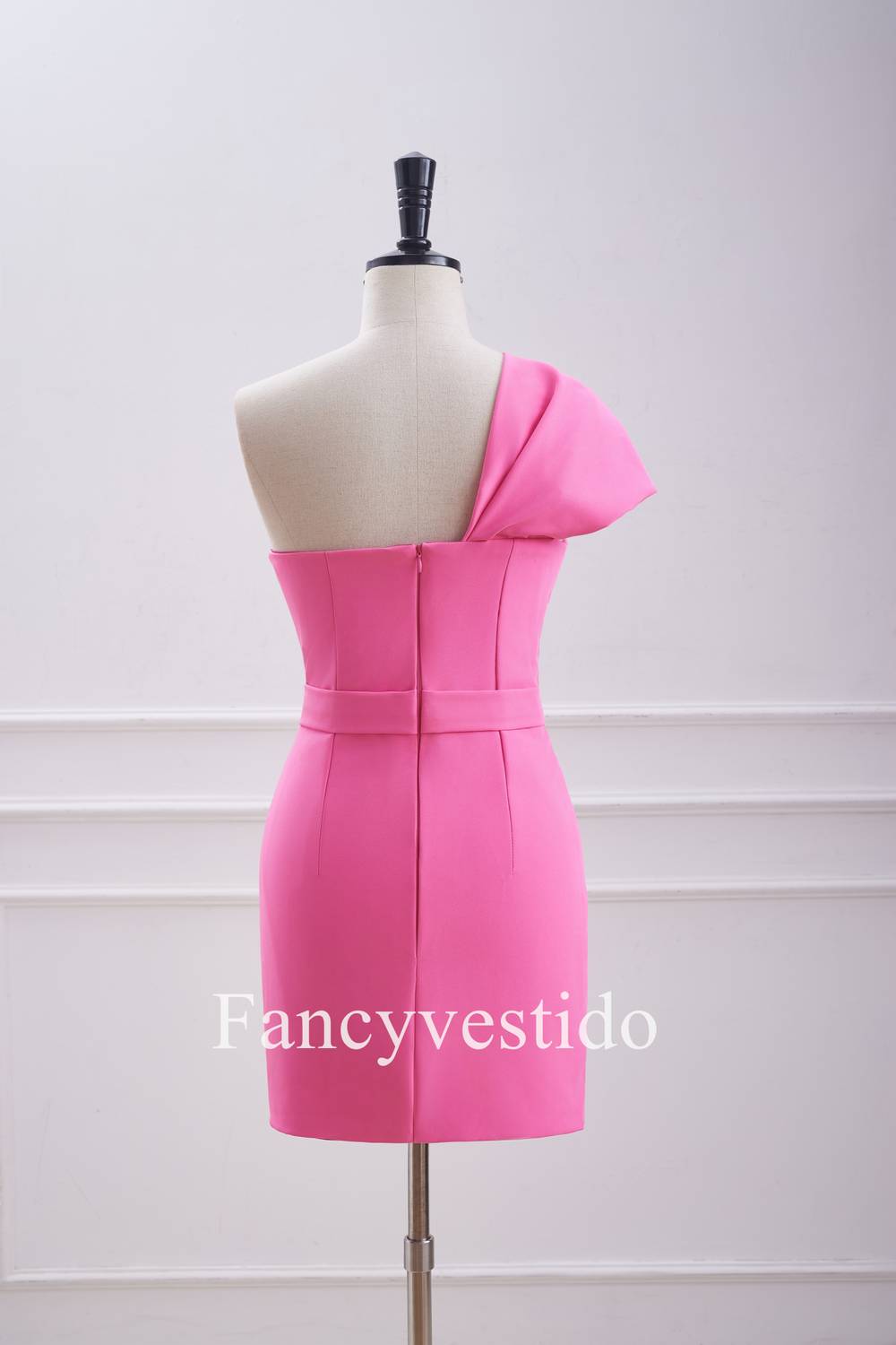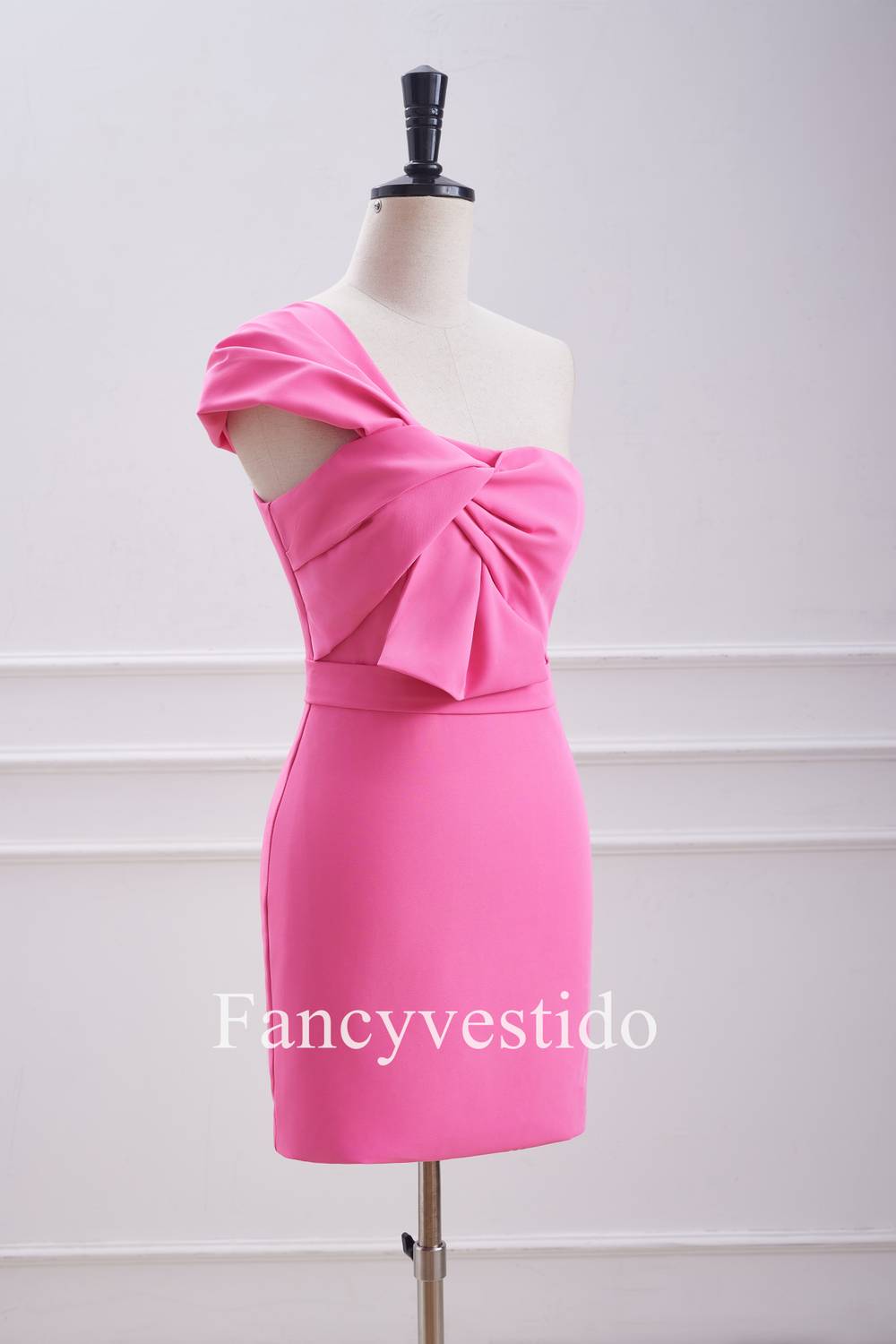 Fitted One Shoulder Twist Hot Pink Knot Mini Dress