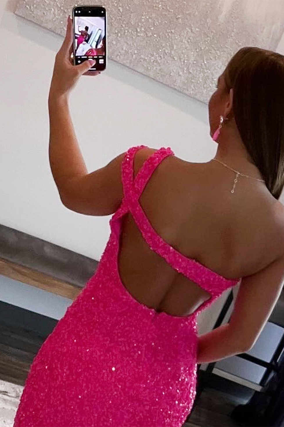 One Shoulder Blue Sequined Bodycon Homecoming Dress
