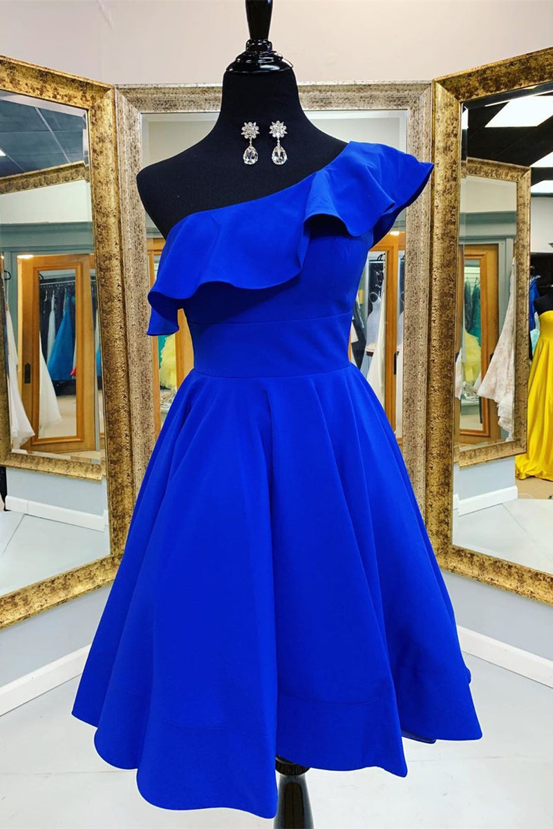 Glitter One Shoulder Royal Blue Sequin Homecoming Dress