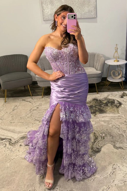 Dark Blue Sweetheart Applique Ruffle Mermaid Prom Dress