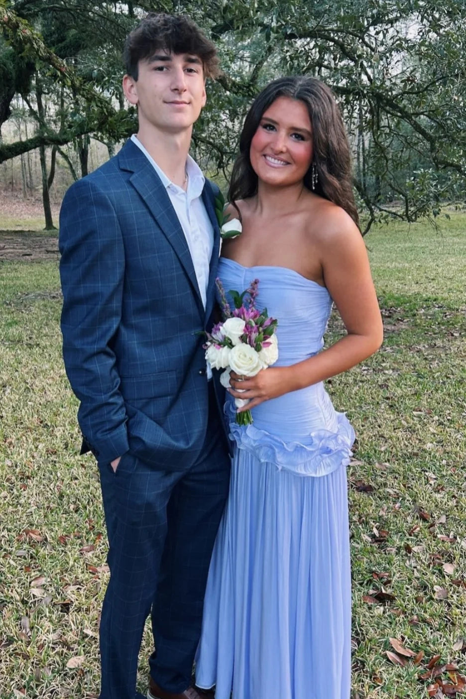 Chiffon Strapless Ruffle Pleated A-Line Long Party Prom Dress