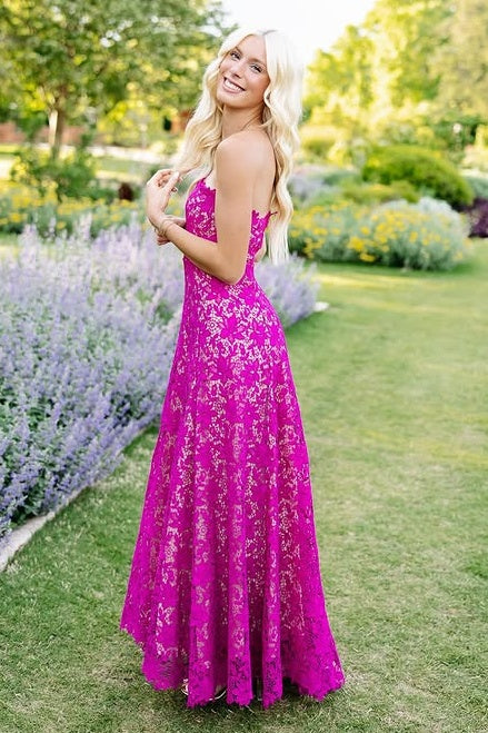 Elegant Lace A-Line Strapless Long Party Prom Dress