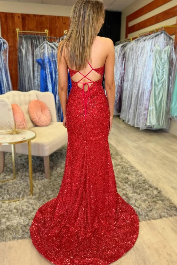 Sparkly Mermaid Sweetheart Lace-Up Sequin Party Prom Dress
