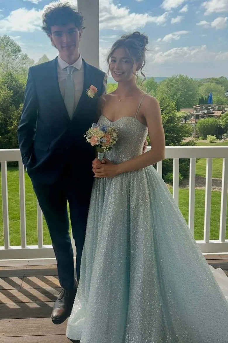 Sweetheart A-Line High Waist Sparkly Maxi Party Prom Dress