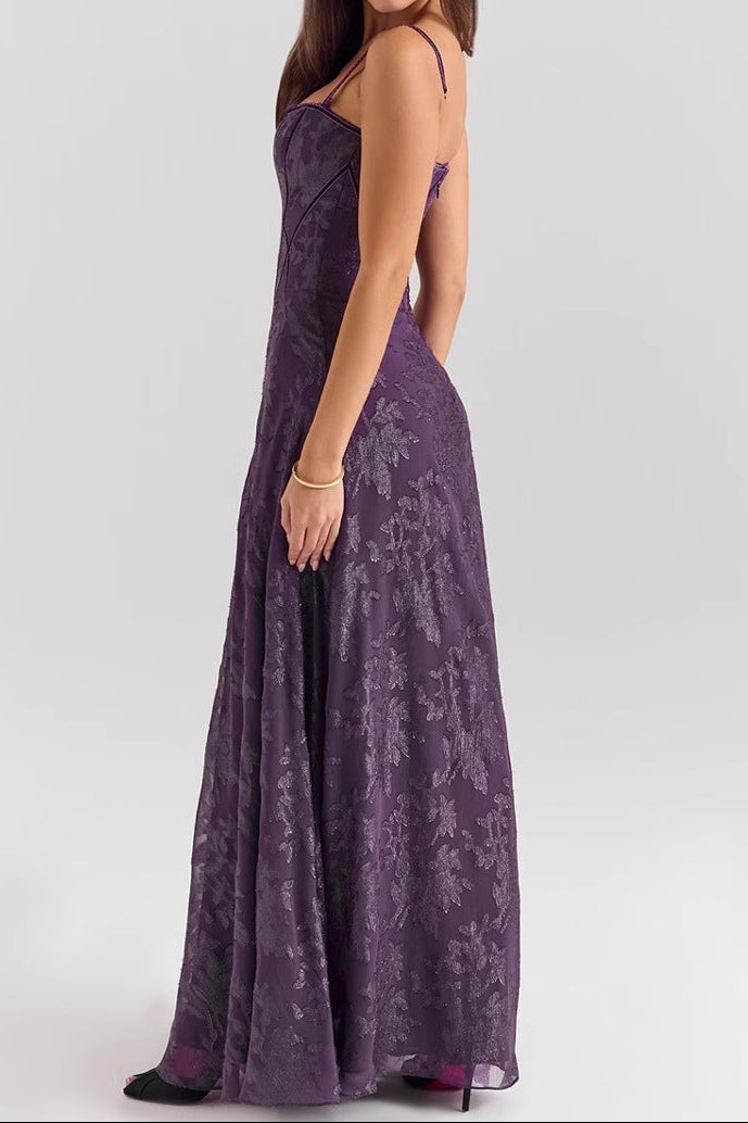 Purple Spaghetti Straps Empire A-Line Maxi Party Prom Dress
