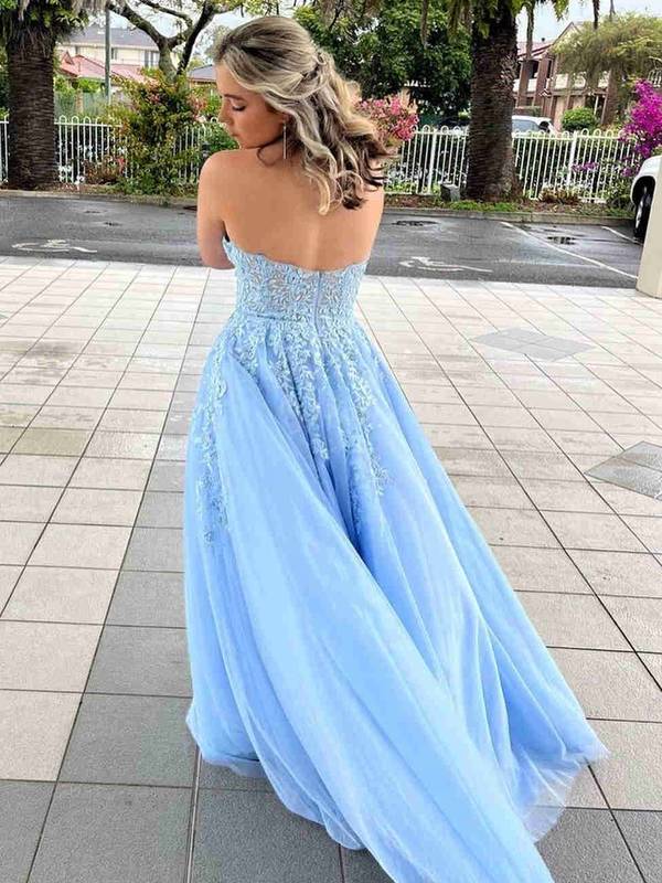 A-Line Strapless Fuchsia Appliques Long Formal Dress