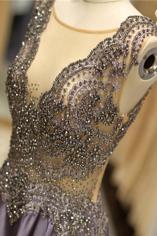 Boutique Illusion Neck Beaded Backless Long Prom Gown