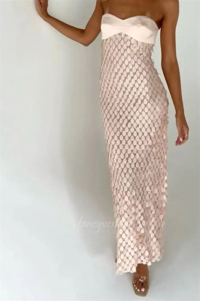 Elevate your prom night with this stunning blue sequin maxi dress. The sweetheart neckline creates a flattering, romantic silhouette while thousands of shimmering sequins catch the light with every movement. The flowing maxi length offers timeless elegance and graceful coverage. Crafted for the discerning guest who values both sophistication and show-stopping glamour, this gown delivers red-carpet worthy style. Perfect for prom, formal galas, or any occasion demanding refined luxury.