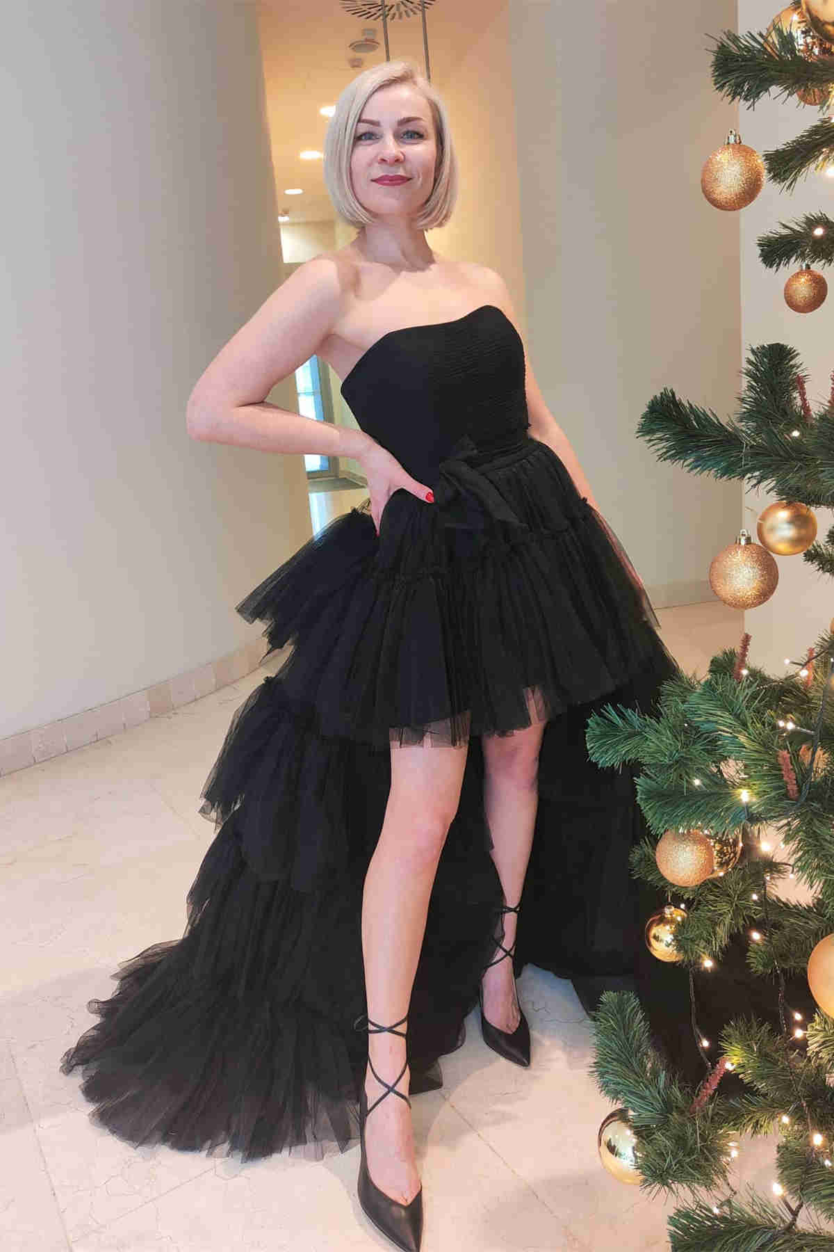 Elegant Strapless Layered Hot Pink Long Prom Dress with Slit