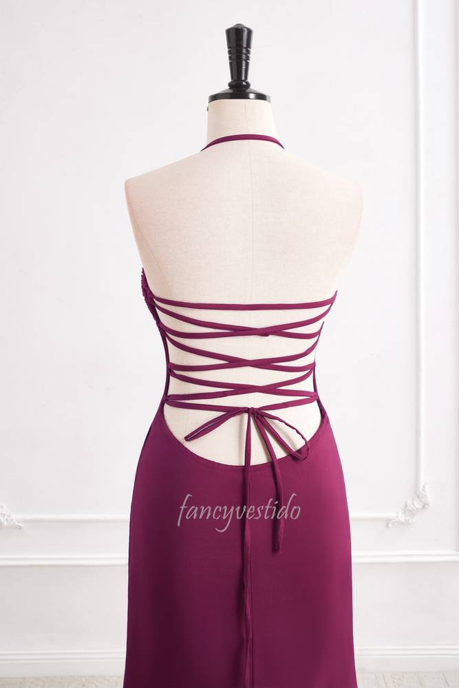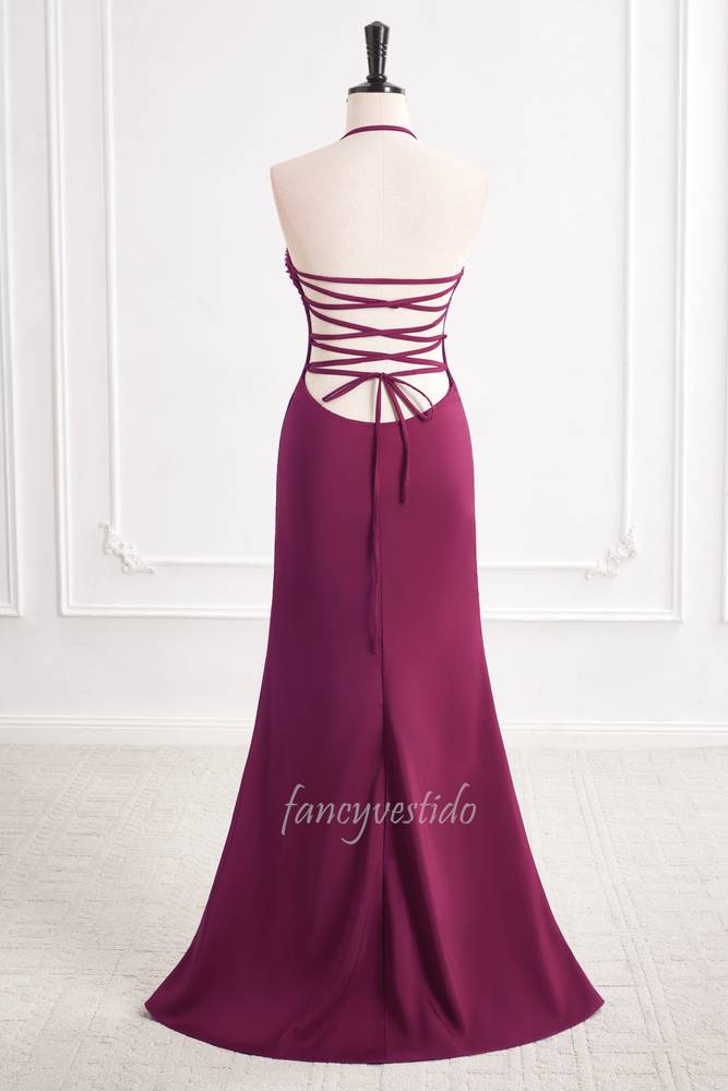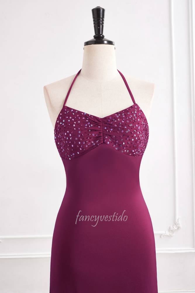 Halter Sequin Sheath Maxi Prom Dress with Lace-ip Back