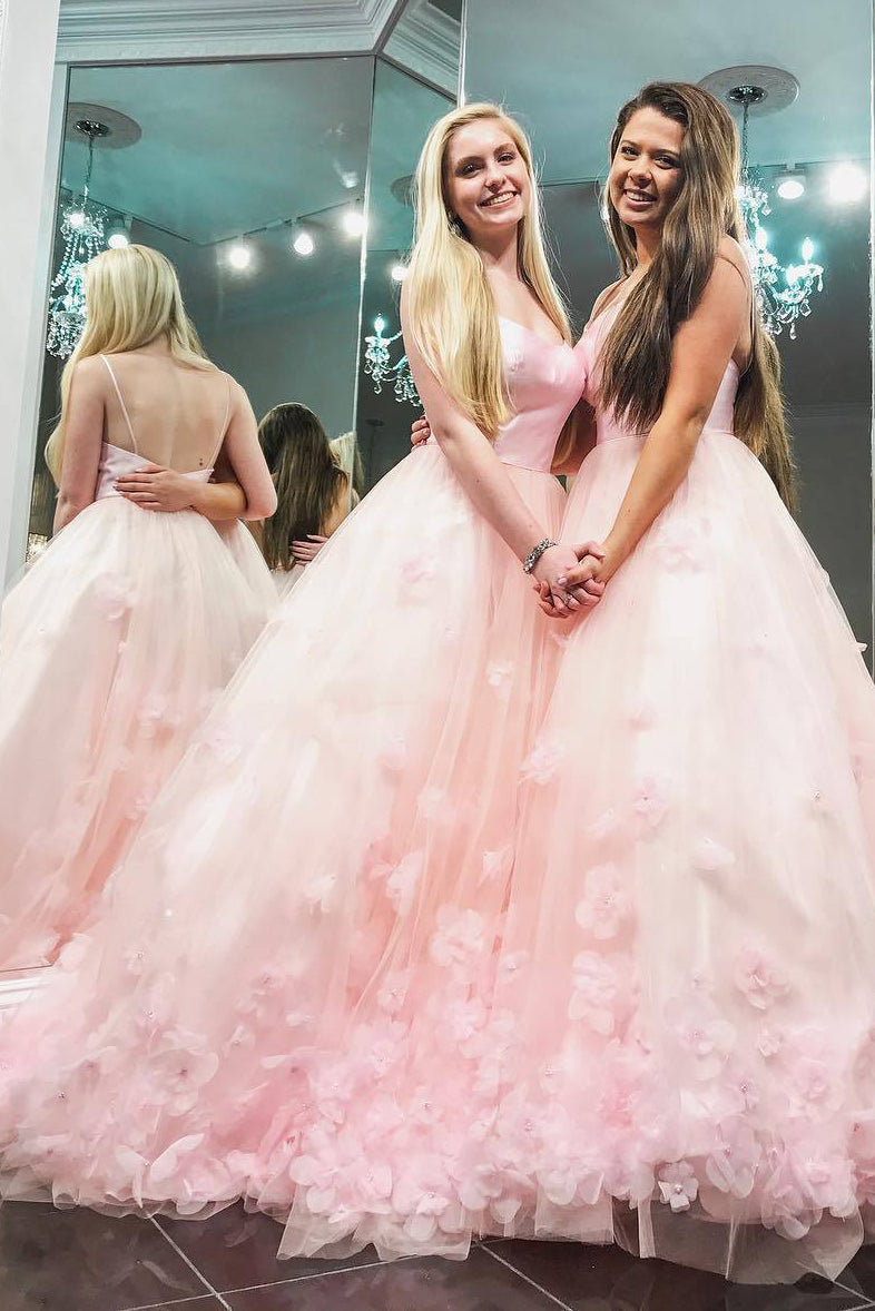Princess Spaghetti Straps Appliques Pink Long Prom Dress