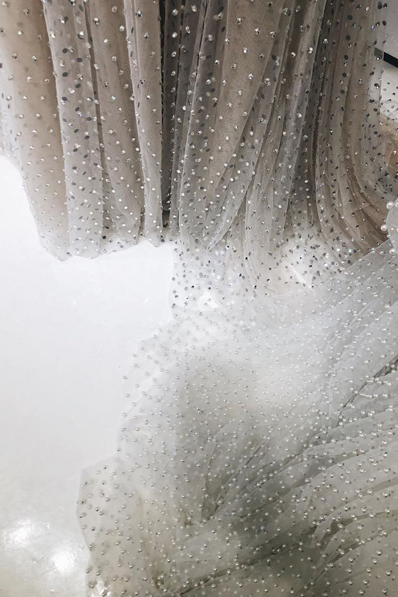 V-Neck Mesh Long Ivory Prom Dress with Open Back