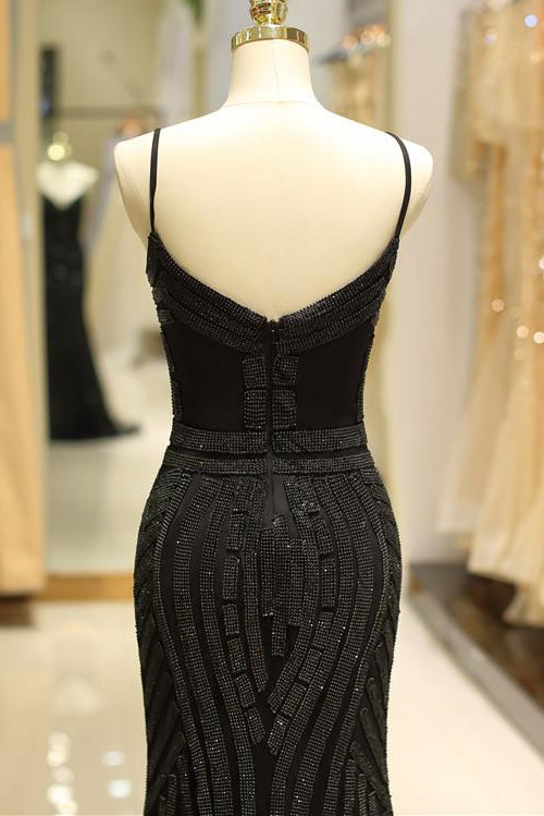 Mermaid Spaghetti Straps Black Long Prom Dress