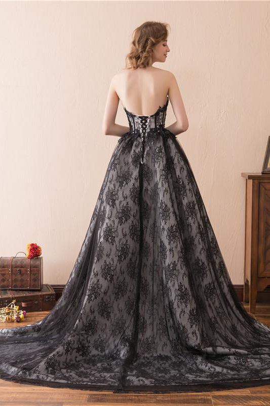 Strapless Black Sheath Slit Mermaid Prom Dress with Tassels