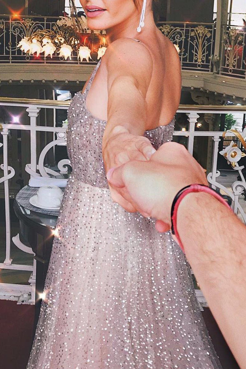 V-Neck Sequin Mermaid Prom Dress with Detachable Train