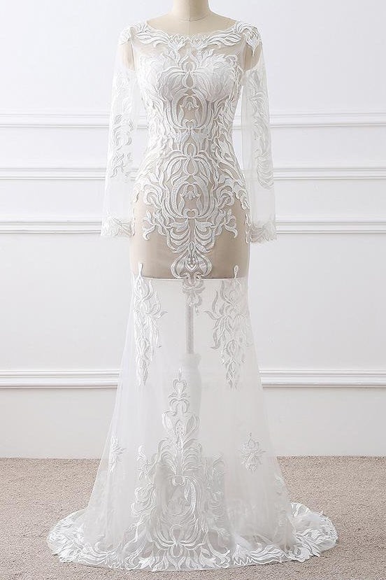 See-Through Sheer Long Sleeves Mermaid Prom Dress