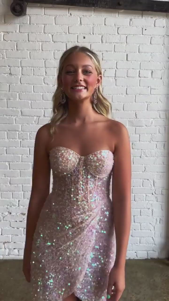 Sparkle Strapless Silver Sequins Homecoming Dress