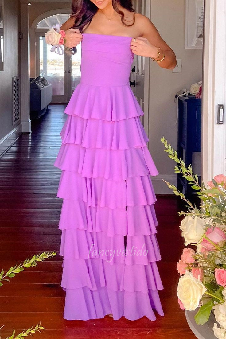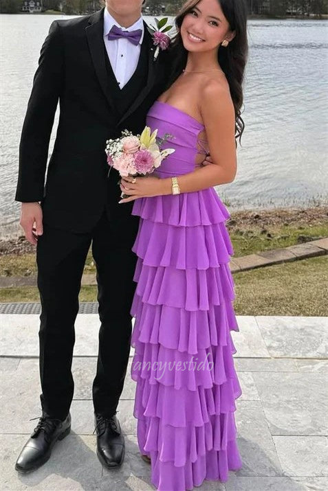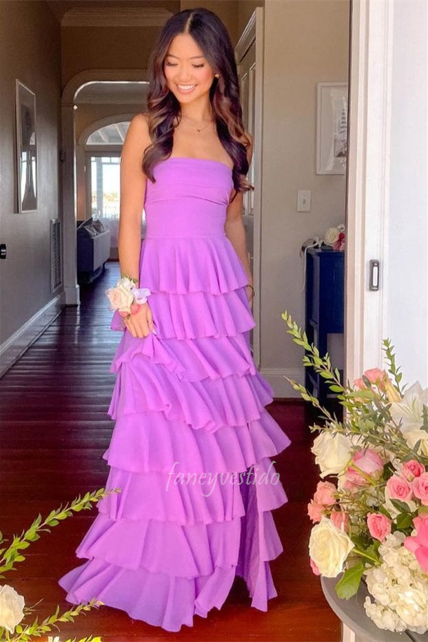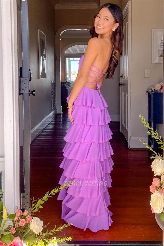 Elegant Strapless Mermaid Slit Ruffle Prom Dress with Lace-up