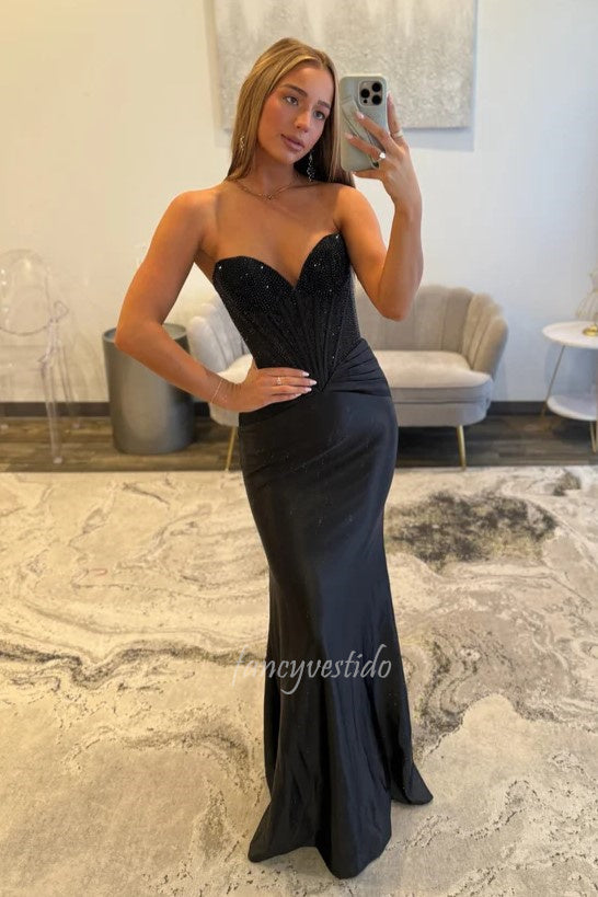 Black Strapless Sweetheart Boned Mermaid Formal Prom Dress