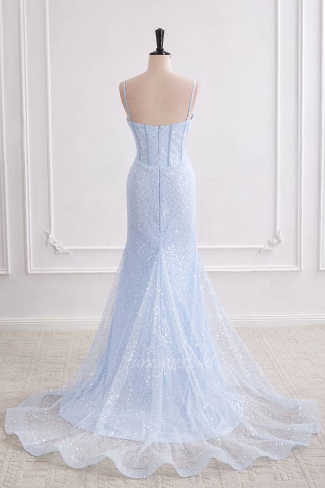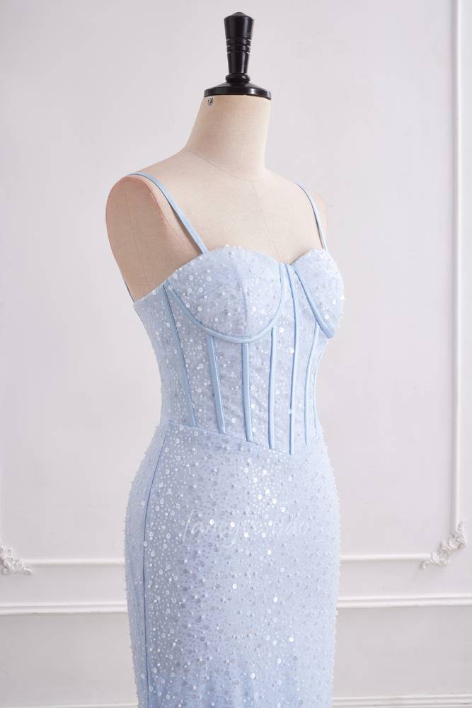 Sparkly Light Blue Sequin Mermaid Long Prom Dress