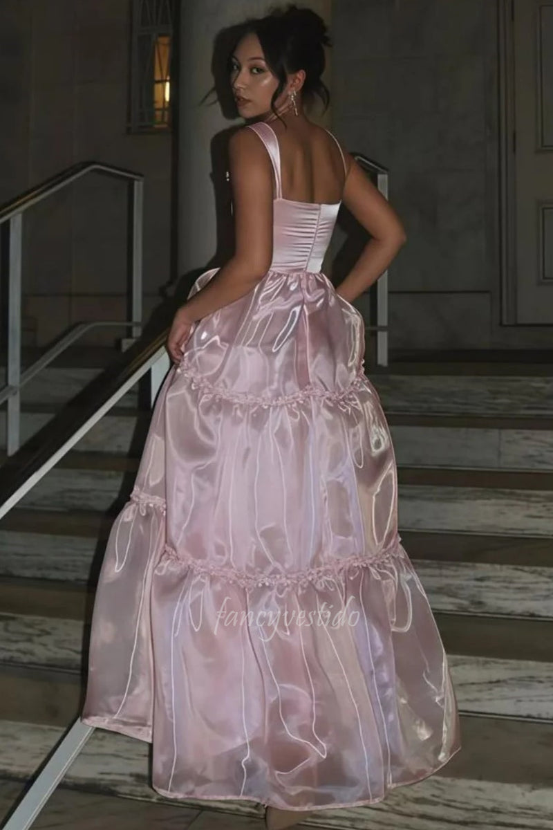 Straps V-Neck Corset Layered A-Line Prom Dress with Applique