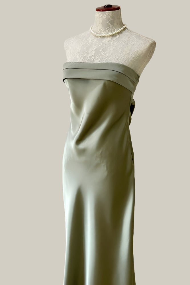 Light Green Lace Top A-Line Long Bridesmaid Dress