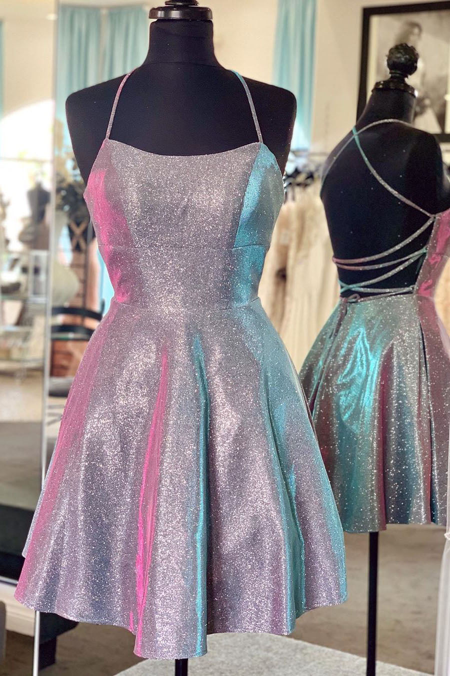 Spaghetti Straps Cowl Neck Tea-Length Champagne Bridesmaid Dress