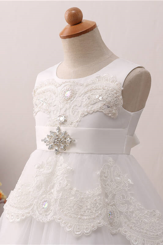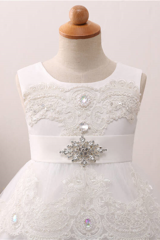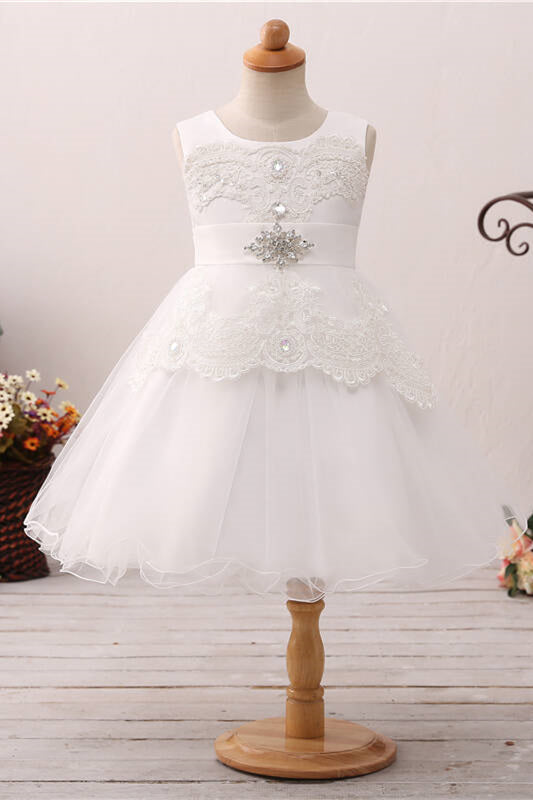 Cute Lace Appliques Toddler White Flower Girl Dress with Beads