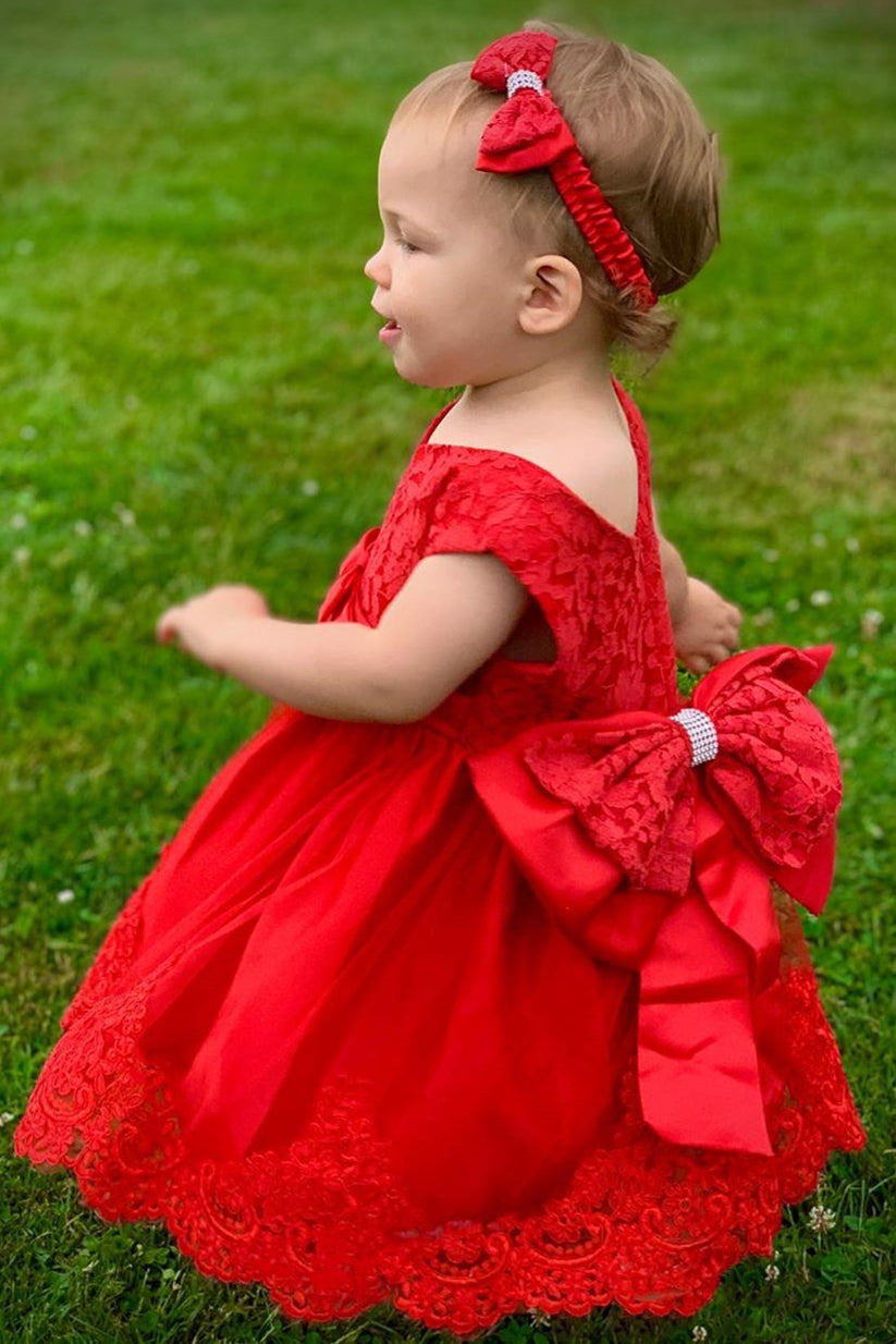 Cute Toddler Red Flower Girl Dress with Bowknot