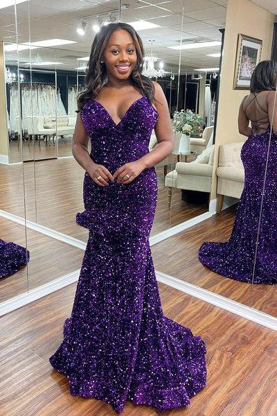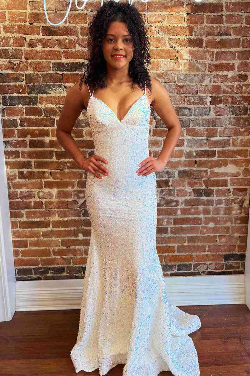 Lace-Up Pink V-Neck Sequined Long Prom Dress