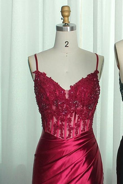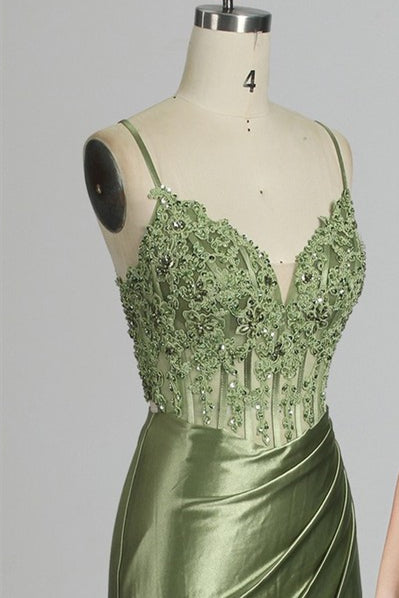 Mermaid Emerald Green Straps Ruched Prom Dress with Slit