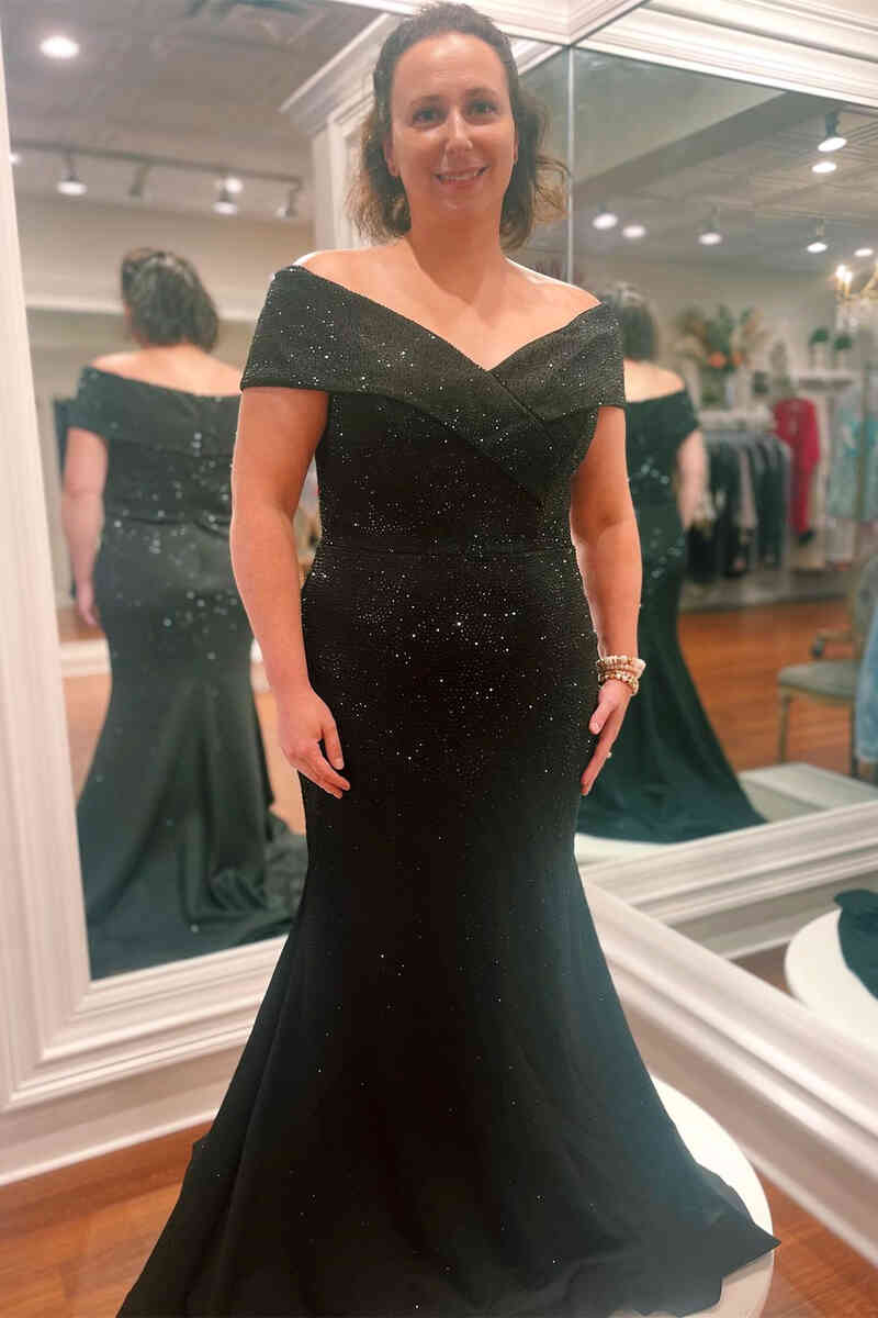 Mermaid Off the Shoulder Black Crystal Mother of Bride Dress