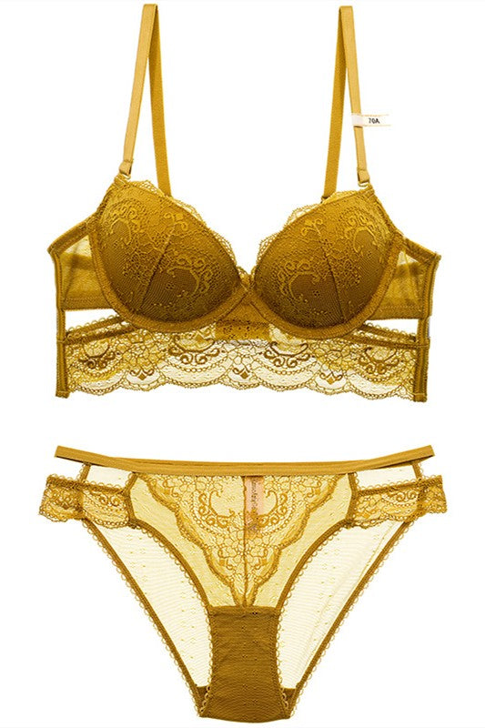 Free Shipping Mustard Yellow Lace Lingerie Set