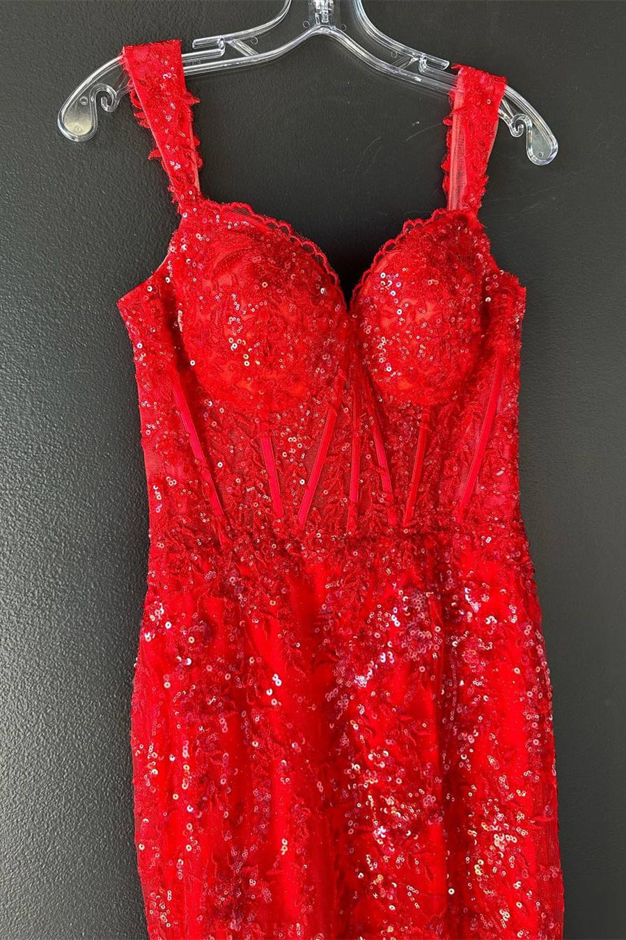 Off the Shoulder Gold Sequin Corset Mermaid Prom Dress with Slit