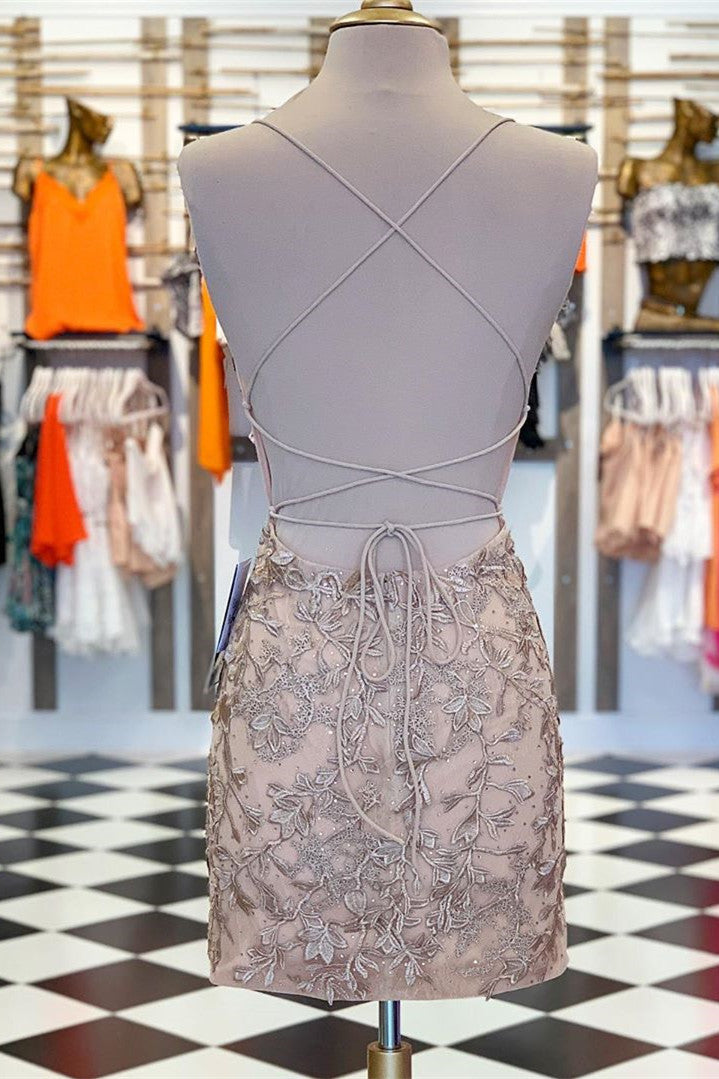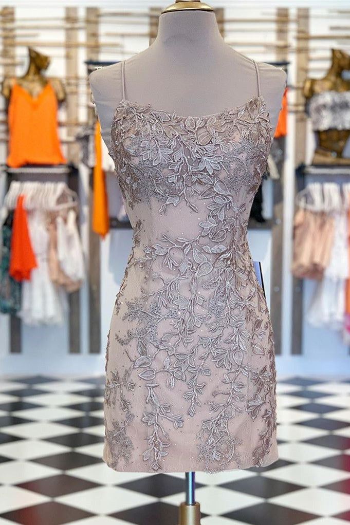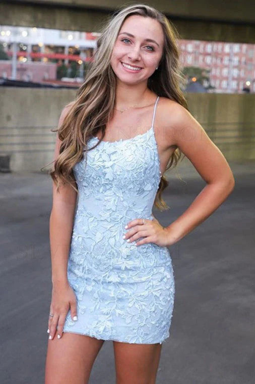 Cute Red short homecoming dress featuring with lace appliques, straps, tight fitted and lace up back.